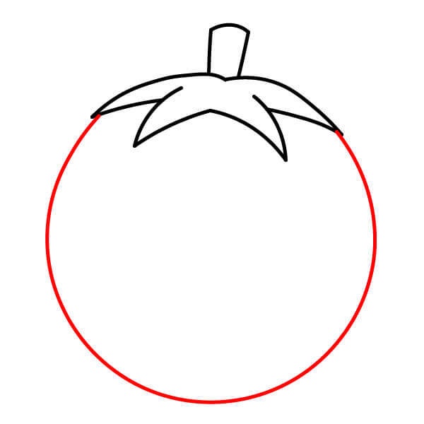 Vẽ phác thảo hình dạng tròn của quả cà chua.