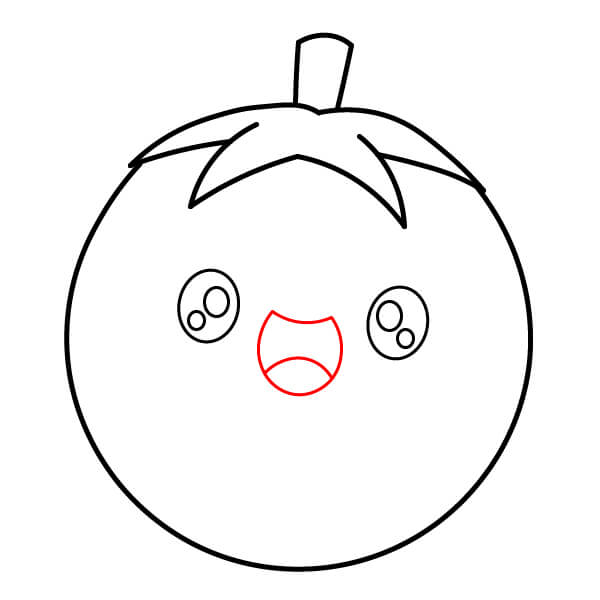Vẽ một hình tròn lớn bên dưới tán lá để tạo thành thân tròn của quả cà chua.