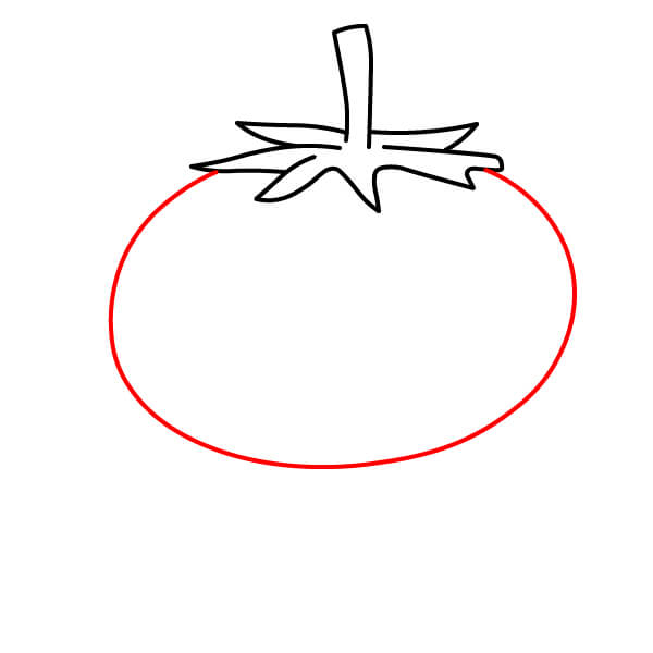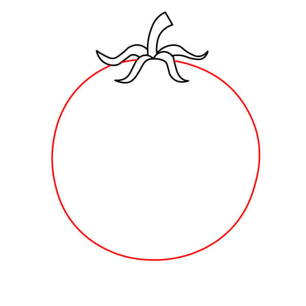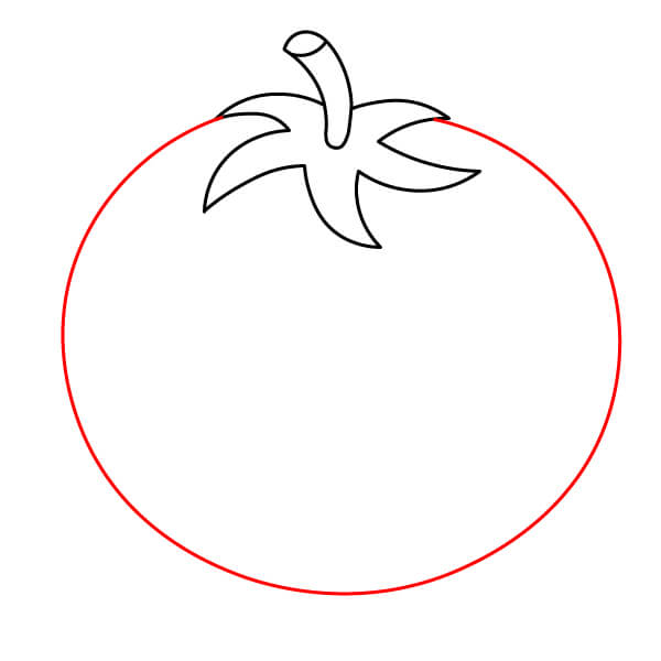 Vẽ phác thảo phần thân tròn của quả cà chua.