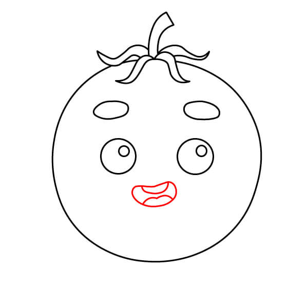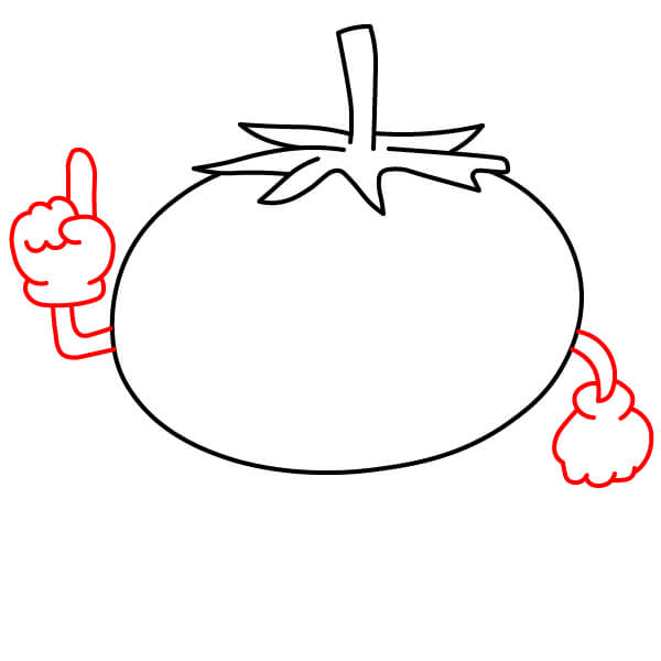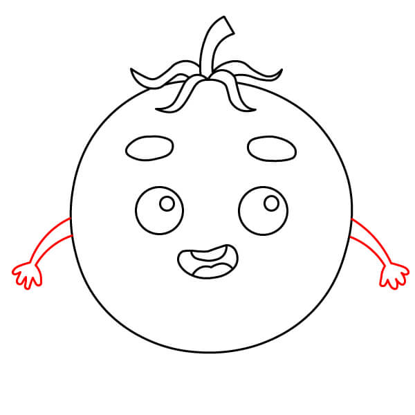 Vẽ cuống cong của quả cà chua.