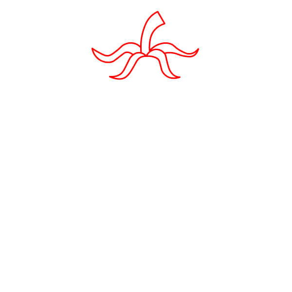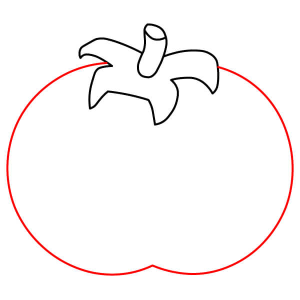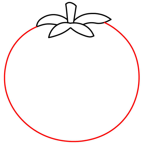 Bắt đầu bằng cách vẽ năm hình lá nhọn ở phía trên quả cà chua. Chúng tạo thành tán lá của quả cà chua.