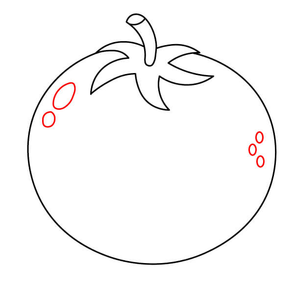 Thêm một vài hình bầu dục nhỏ để tượng trưng cho những giọt nước trên quả cà chua.