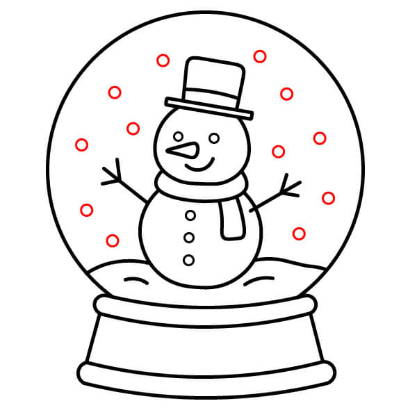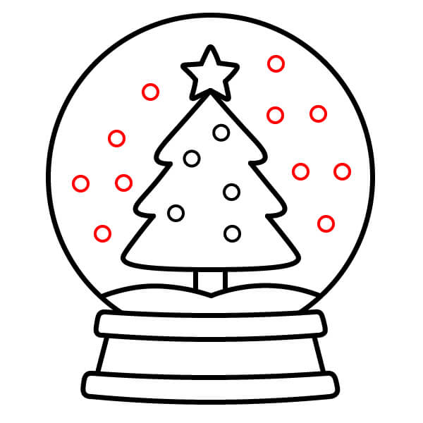 Bước 10: Vẽ thêm các hình tròn nhỏ rải rác xung quanh khoảng trống bên trong quả cầu để tượng trưng cho những bông tuyết rơi.