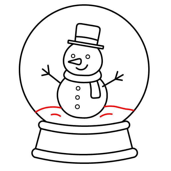 Bước 5: Bên trong quả cầu, gần đáy, vẽ một đường lượn sóng, không đều để tượng trưng cho một ụ tuyết/đất bên trong.