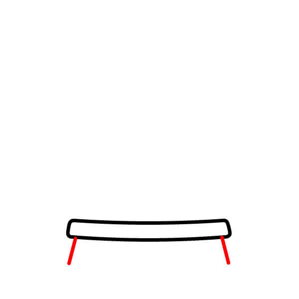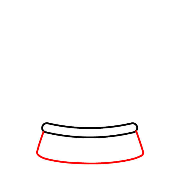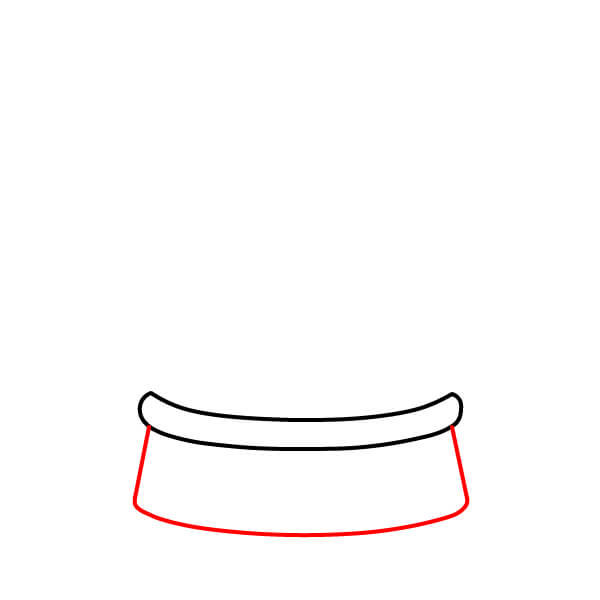 Bước 2: Vẽ hai đường thẳng đứng nghiêng ra ngoài từ hai đầu của hình ở Bước 1, và nối phần đáy của chúng bằng một đường cong rộng. Điều này tạo thành phần chính của đế.