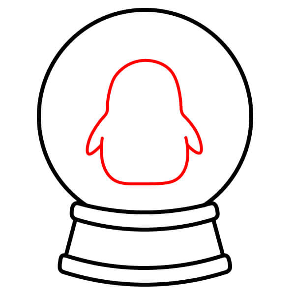 Bước 4: Bên trong quả cầu, vẽ một hình thuôn dài, tròn trịa cho thân chim cánh cụt, với hai cánh/vây nhỏ, cong nhô ra từ hai bên.