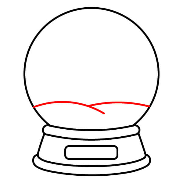 Bước 6: Bên trong đáy của quả cầu, vẽ một đường lượn sóng, không đều để tượng trưng cho mặt đất phủ đầy tuyết, hơi cong lên để tạo thành một ngọn đồi nhỏ.
