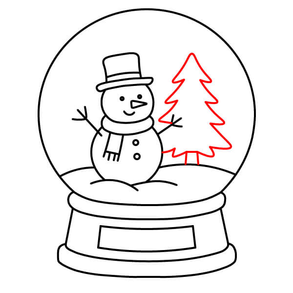 Bước 8: Vẽ một hình tam giác nhiều tầng ở phía bên phải của quả cầu để làm cây thông Noel. Thêm một hình chữ nhật ngắn thẳng đứng bên dưới để làm thân cây, tựa trên ụ tuyết.