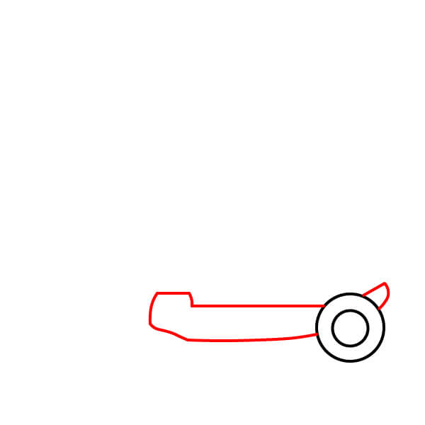 Bước 5: Vẽ chắn bùn bánh sau. Ở phía bên phải của sàn xe, vẽ một đường cong dài uốn cong qua vị trí bánh sau.