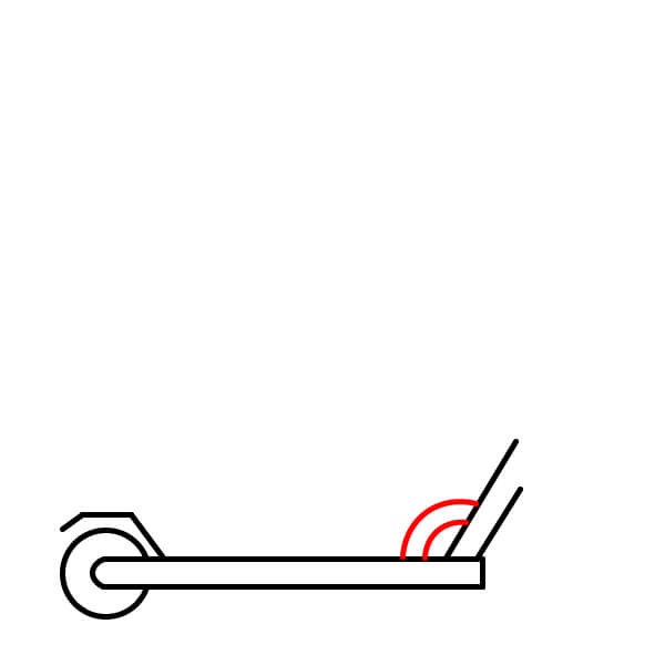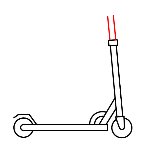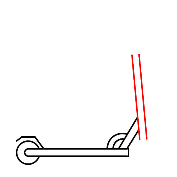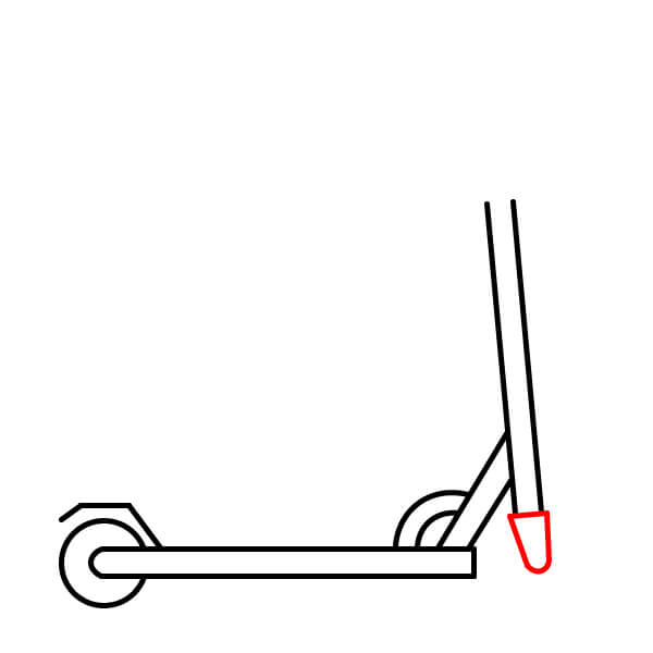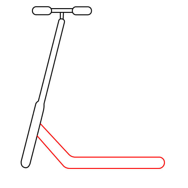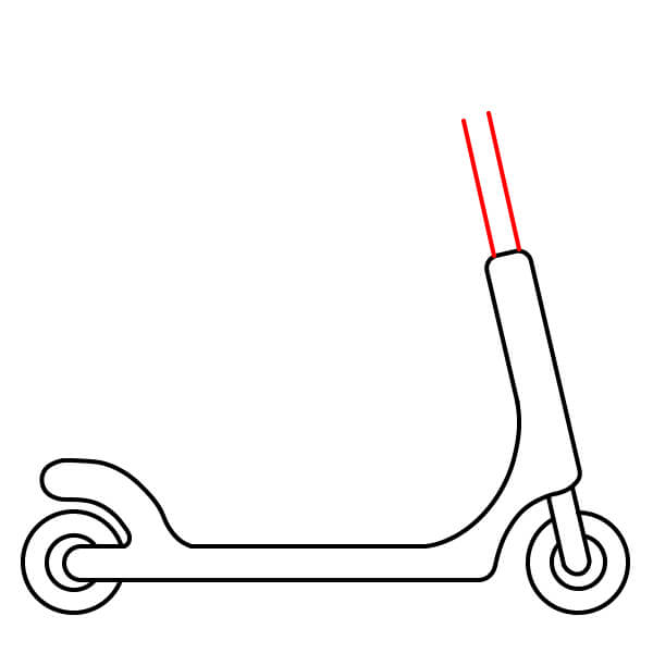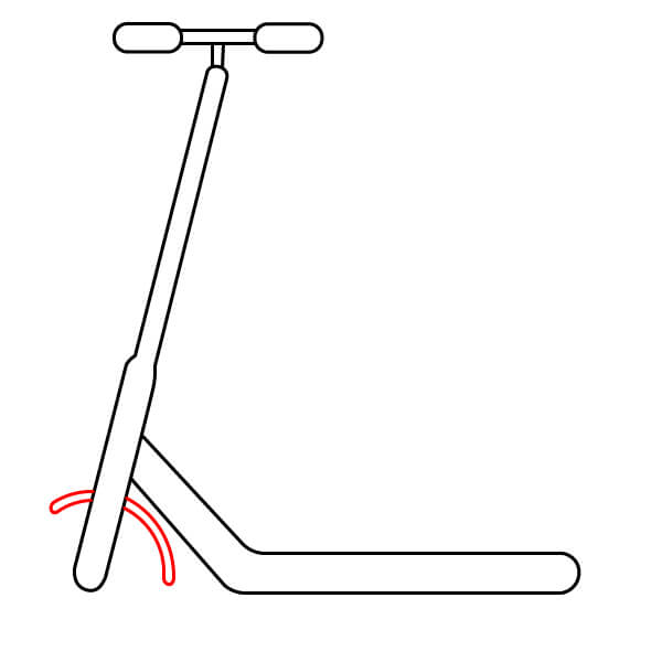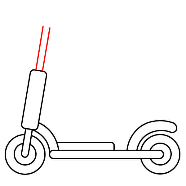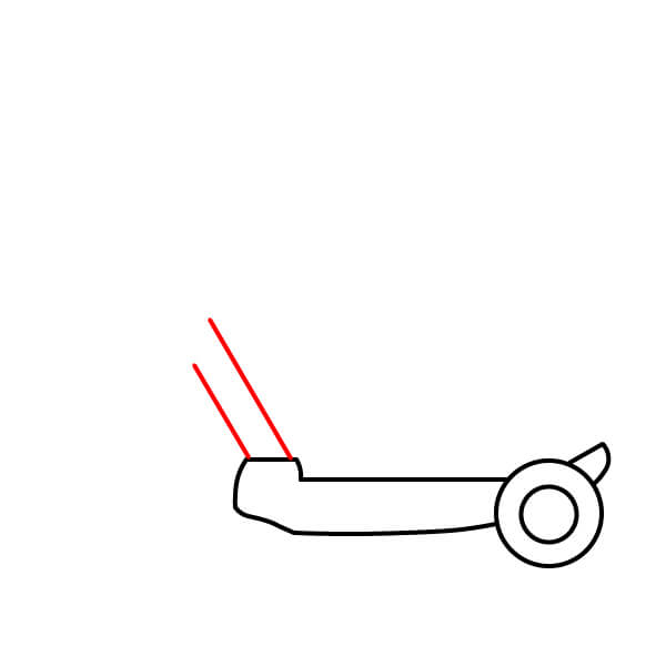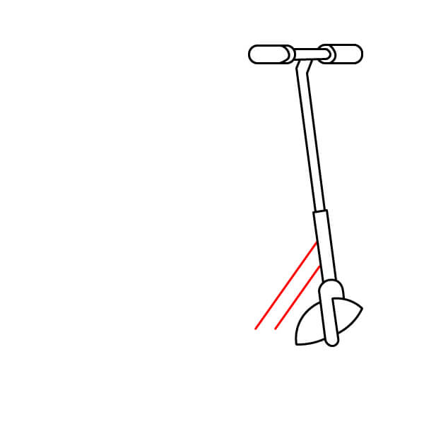 Bước 5: Từ phần dưới cùng của thân ghi đông (ngay phía trên càng), vẽ hai đường chéo song song kéo dài xuống dưới và hơi sang trái. Chúng sẽ tạo thành một phần của khung chính của xe scooter.