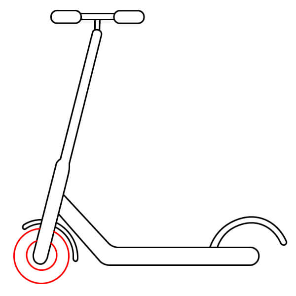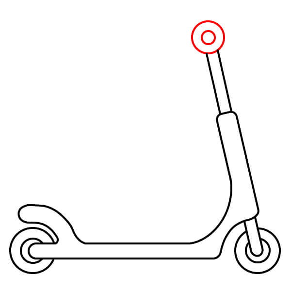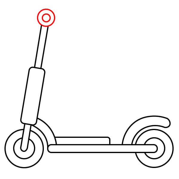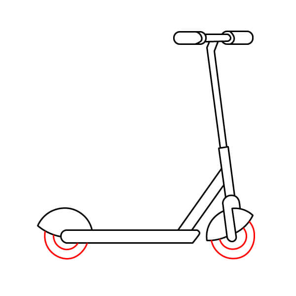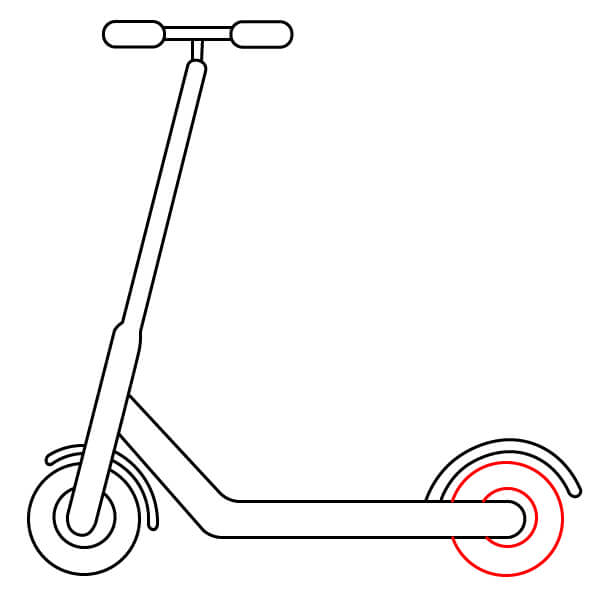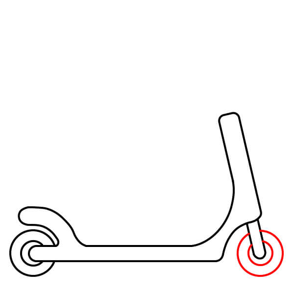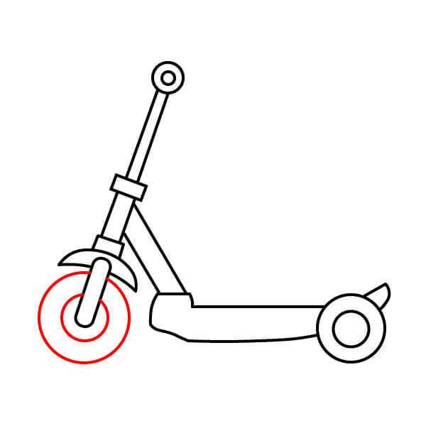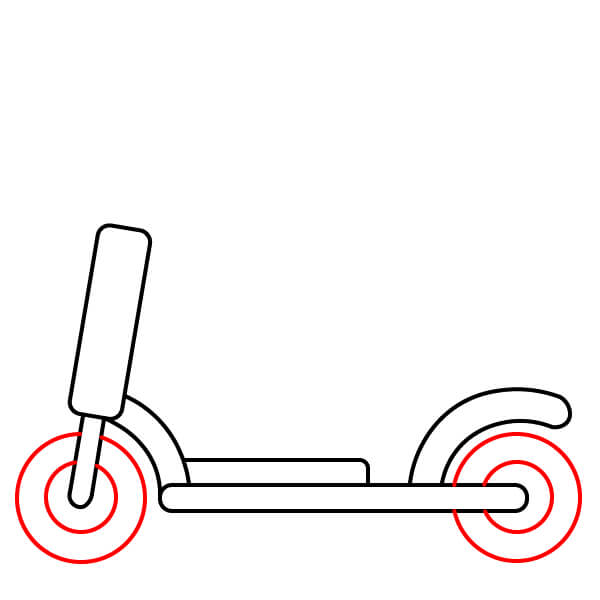 Bước 7: Vẽ hai vòng tròn đồng tâm ở cả phía trước và phía sau xe scooter để tạo thành bánh xe.