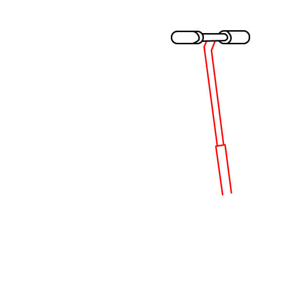 Bước 10: Vẽ thêm hai đường thẳng song song kéo dài thẳng đứng lên trên từ hình chữ nhật nhỏ đã vẽ ở Bước 9. Chúng tượng trưng cho tay lái của xe trượt.