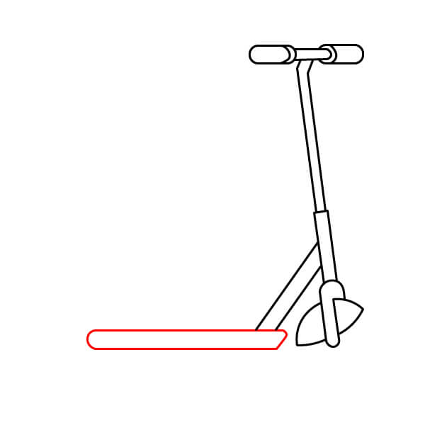 Bước 2: Vẽ phần thân chính (mặt ván) của xe scooter, kéo dài từ bánh sau về phía trước.