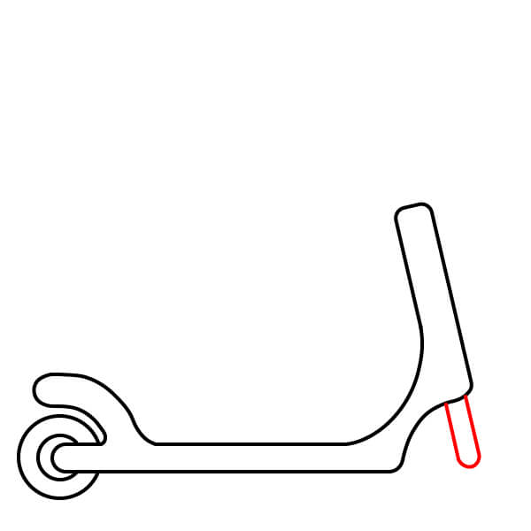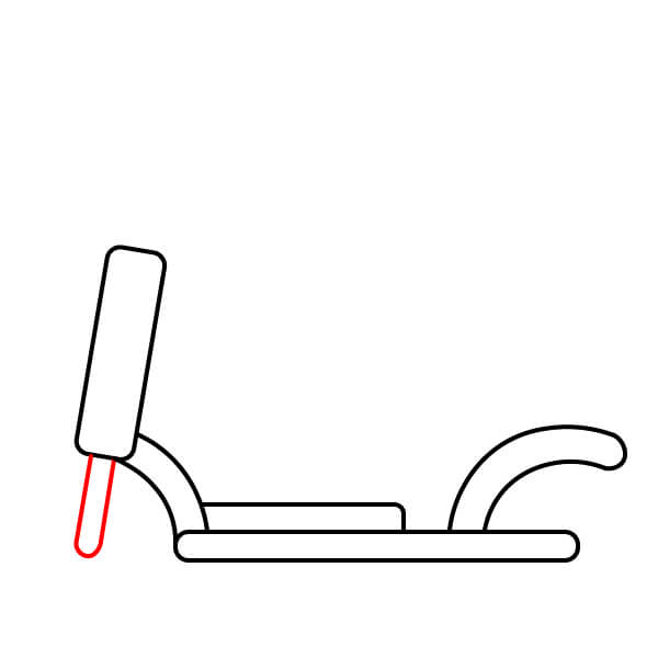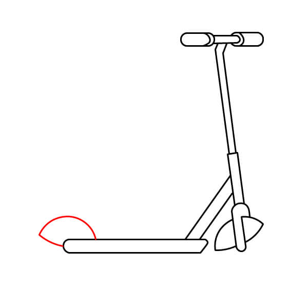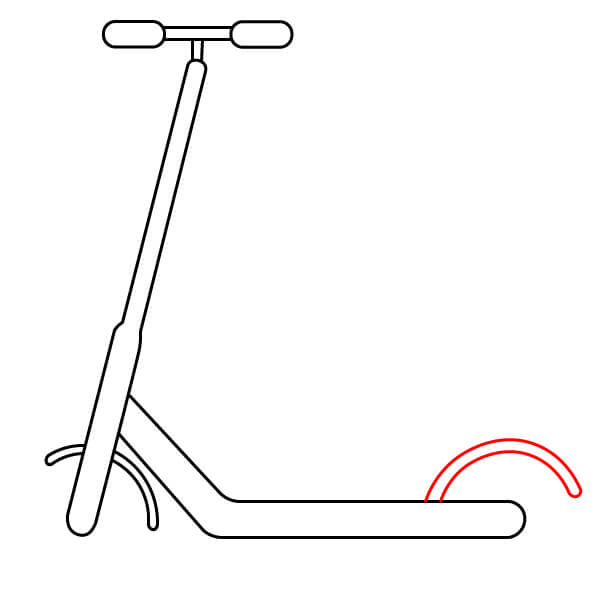 Bước 7: Ở cuối hai đường thẳng đứng từ Bước 6, vẽ một hình chữ “U” bo tròn, nối chúng với ván trượt. Điều này tạo thành càng phuộc cho bánh trước.