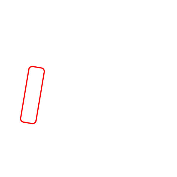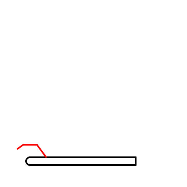 Bước 2: Ở phía bên trái của hình chữ nhật bo tròn, vẽ một đoạn thẳng nhỏ, vát nhẹ lên trên và sang trái. Điều này bắt đầu tạo thành chắn bùn bánh sau.