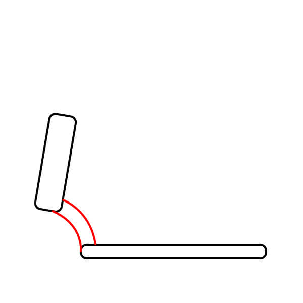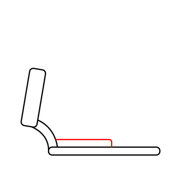 Bước 4: Ở phía bên phải của hình chữ nhật bo tròn chính, vẽ hai đường chéo ngắn, song song, kéo dài lên trên và sang phải. Những đường này sẽ là một phần của cơ cấu nối bánh trước với ván trượt.