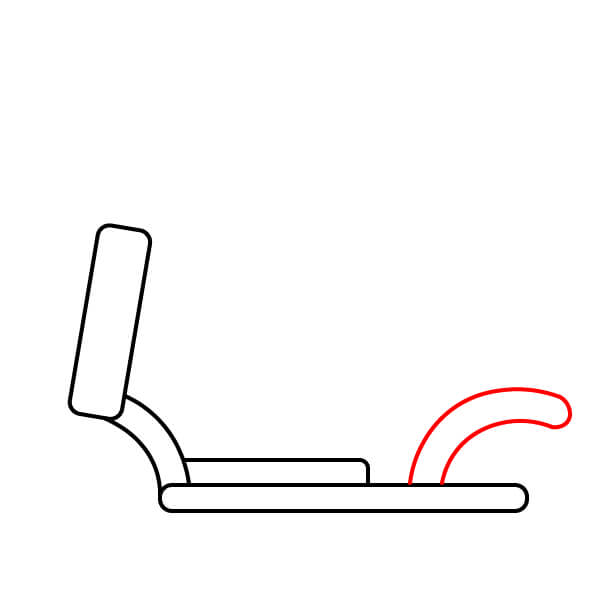 Bước 5: Giữa hai đường chéo từ Bước 4, vẽ một hình cong giống hình chữ “U” bo tròn hoặc hình vòm, nối các đầu của những đường này với ván trượt. Điều này tạo thành một phần khác của giá đỡ bánh trước.