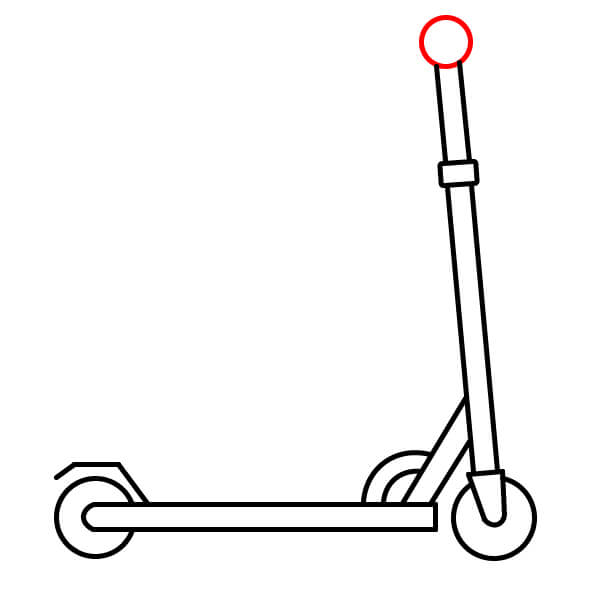 Bước 5: Vẽ phần thân tay lái hướng lên trên từ chỗ gắn tay lái, và một vòng tròn nhỏ ở trên cùng để làm tay nắm.