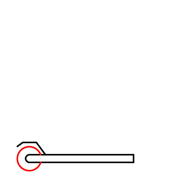 Bước 2: Vẽ một đường thẳng đứng từ tâm ghi đông xuống dưới, kéo dài nó thành một tập hợp các đường song song rộng hơn một chút cho phần thân ghi đông.