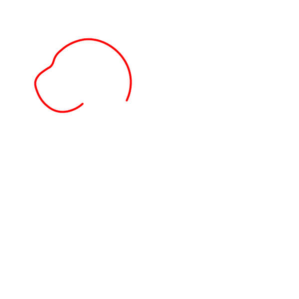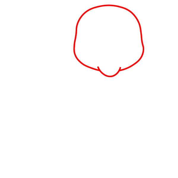 Bắt đầu bằng cách vẽ một đường viền lớn, tròn, hơi giống hình quả lê cho phần đầu. Thêm một vết lõm nhẹ ở giữa phía dưới để chỉ ra điểm bắt đầu của vùng mõm.