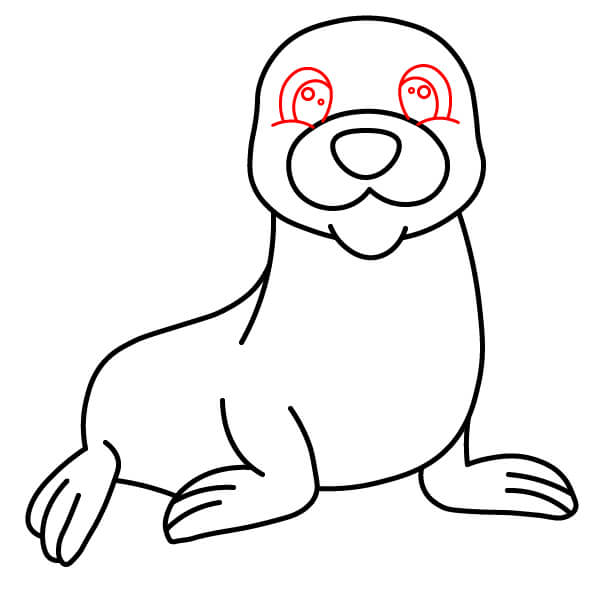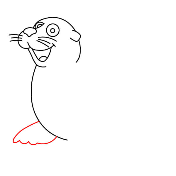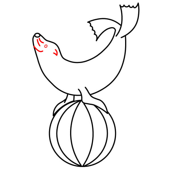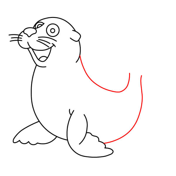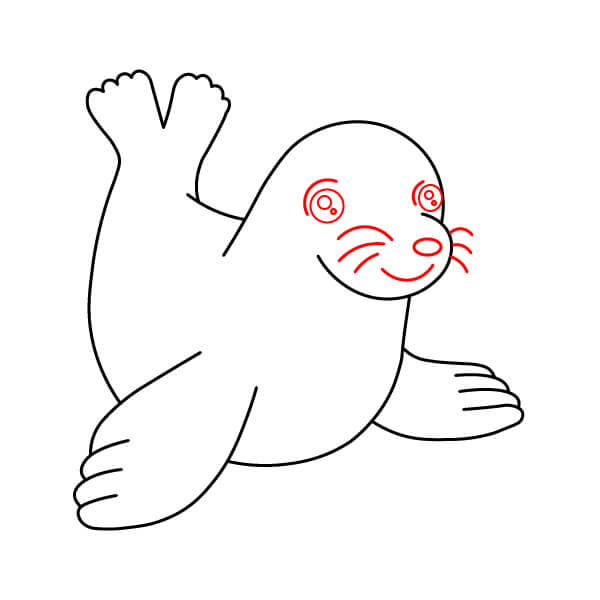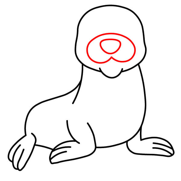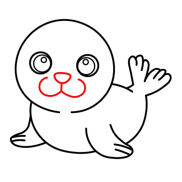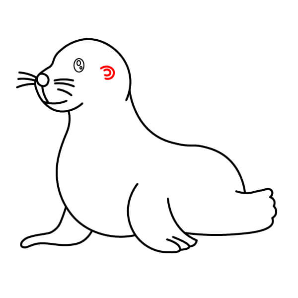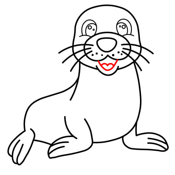 Vẽ một đường cong ngay dưới mõm để tạo hình miệng cười, mang lại vẻ mặt vui vẻ cho hải sư.