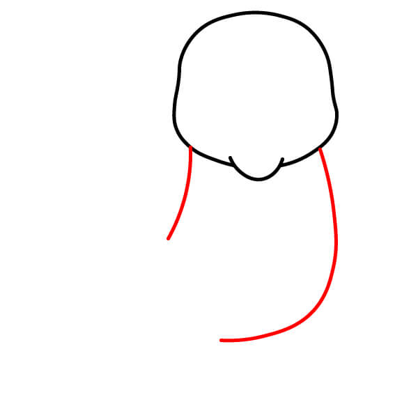Vẽ hai đường cong kéo dài xuống từ hai bên đầu để tạo thành cổ và phần bắt đầu của thân. Những đường này tạo hình dạng thân chính.