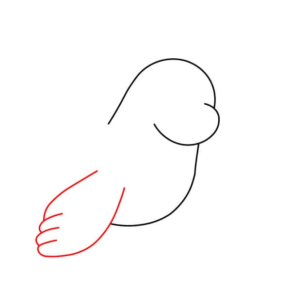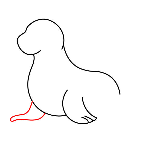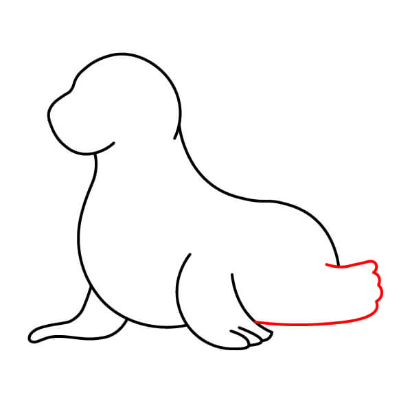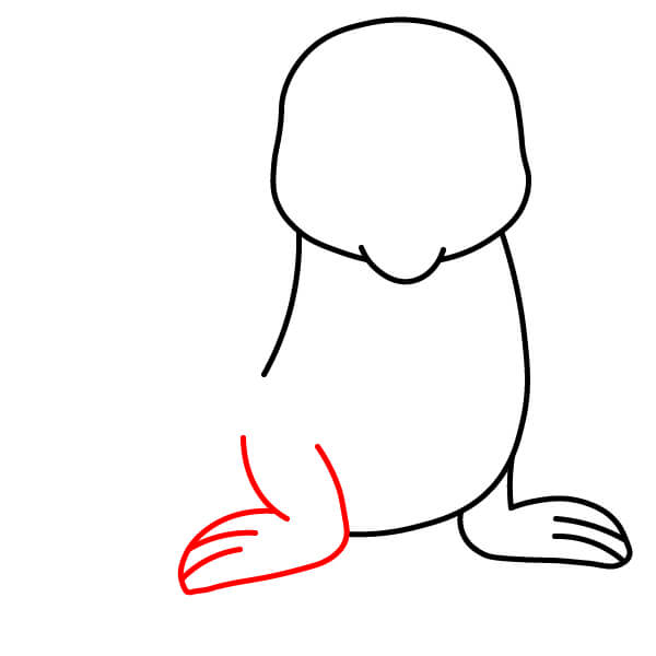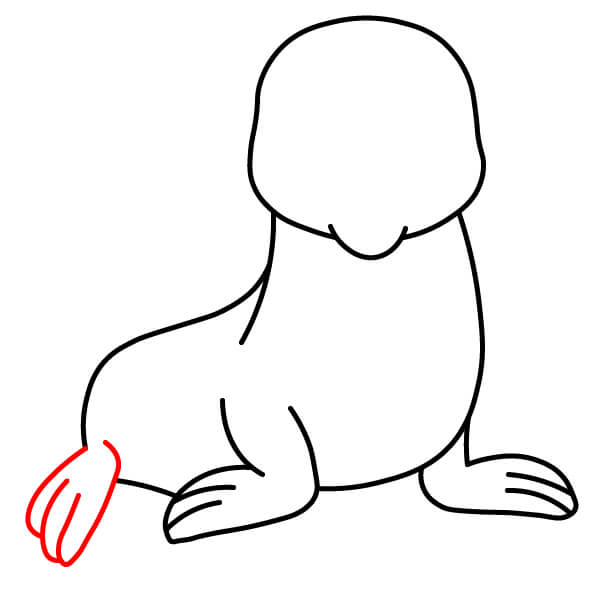 Vẽ vây trước bên trái. Vây này rộng và phẳng, thể hiện ba ngón tròn riêng biệt đặt trên mặt đất. Nối nó với thân bằng một đường cong.
