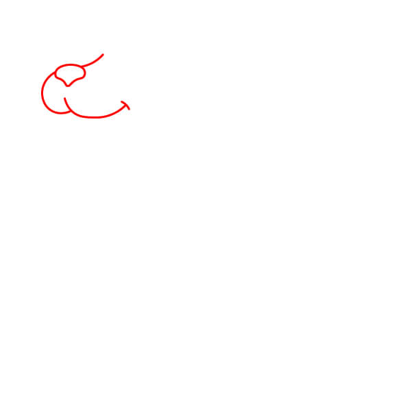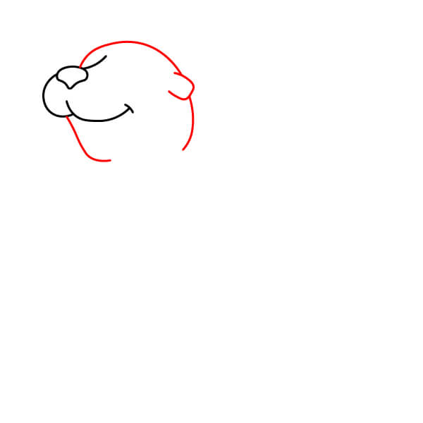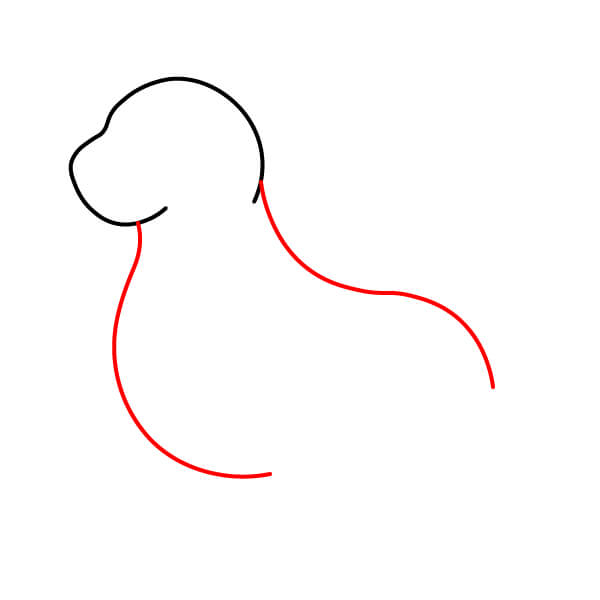 Vẽ một đường cong lớn, mượt mà nối với đường cong đầu tiên để tạo thành phần còn lại của đầu và hình dạng mõm/mũi tròn.