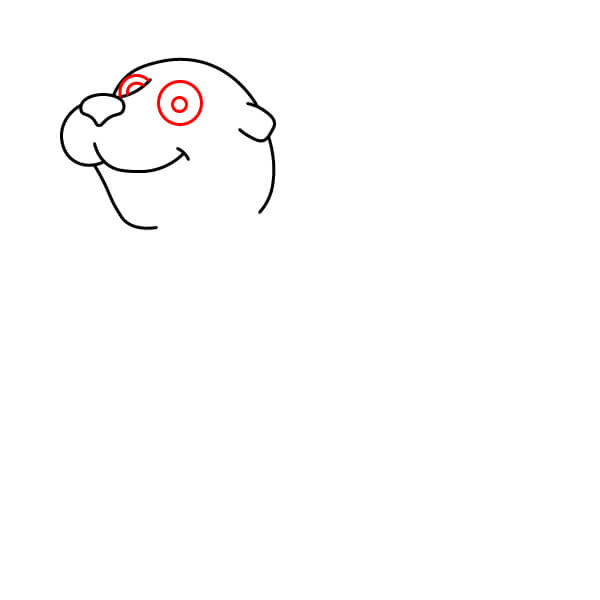Vẽ hai mắt to phía trên mõm. Mỗi mắt nên có một đường viền mí trên/lông mày, một vòng tròn bên trong cho mống mắt/con ngươi, và một chấm nhỏ hoặc hình bầu dục để tạo điểm nhấn, mang lại vẻ ngoài tươi sáng, hoạt hình.