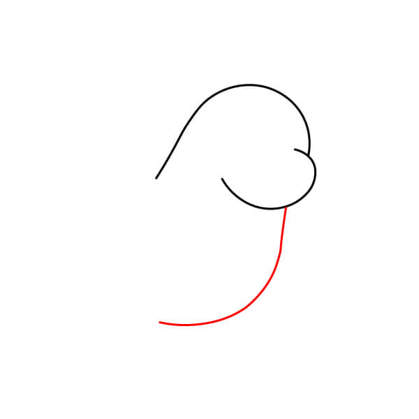 Vẽ một đường cong dài, đơn giản kéo dài xuống từ phía trước đầu để xác định phần trước của thân và cổ.
