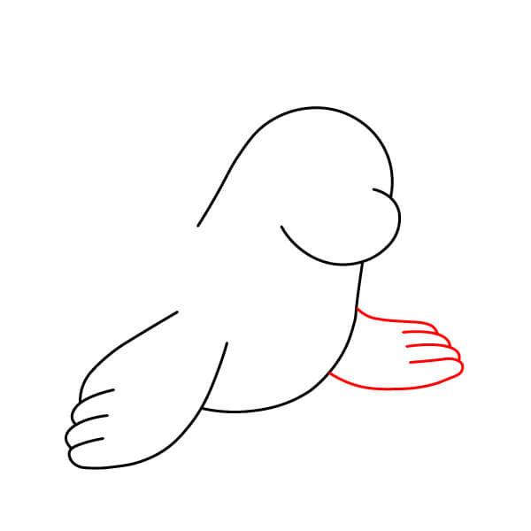 Vẽ vây trước bên phải kéo dài từ phần thân dưới. Vây này nên rộng, phẳng và có ba ngón tròn rõ ràng.