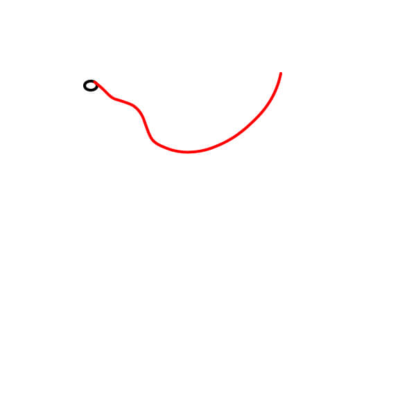 Vẽ một đường cong lớn, uốn lượn bắt đầu từ phía sau đầu/cổ và cong xuống rồi cong lên, tạo thành phần lưng và phần thân dưới.