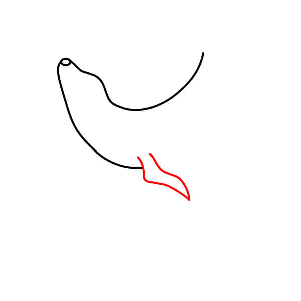 Vẽ một đường cong bên dưới đường viền miệng ban đầu để xác định miệng đang mở. Thêm một đường cong nhỏ bên trong miệng để biểu thị lưỡi.