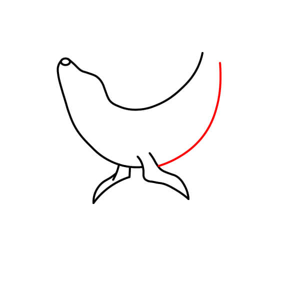 Vẽ một đường cong dài kéo dài về phía sau từ vây trước bên trái để tạo thành đường viền phần thân dưới của hải sư. Đường này xác định phần bụng và phần thân sau.