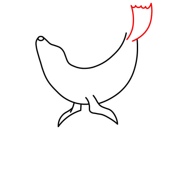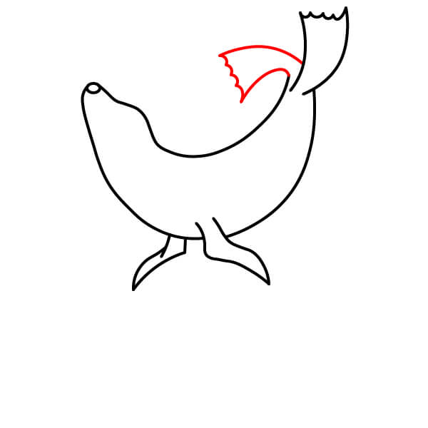 Vẽ phần trên của vây sau/đuôi hướng lên không trung. Hình dạng này nên có một đường lượn sóng hoặc răng cưa ở phía trên để gợi ý các ngón chân hoặc thùy.