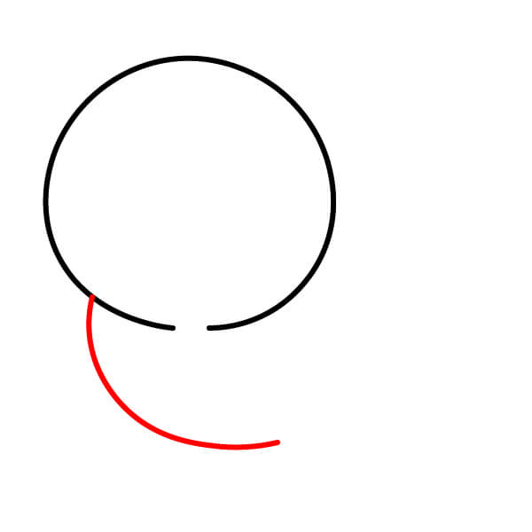 Bắt đầu bằng cách vẽ một hình tròn lớn để tạo hình dạng chính của đầu. Để lại một khoảng trống nhỏ ở phía dưới cho phần nối giữa cổ và mõm.