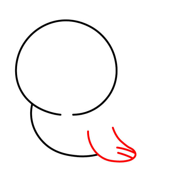 Vẽ một đường cong kéo dài xuống dưới từ khoảng trống phía dưới của hình tròn để tạo thành phần cổ/ngực dưới.