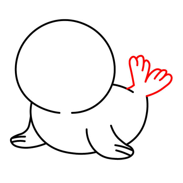 Vẽ vây trước bên trái bên cạnh vây bên phải, trông nhỏ hơn một chút hoặc bị che khuất một phần. Cho nó hình dạng tròn, giống như các ngón tay.
