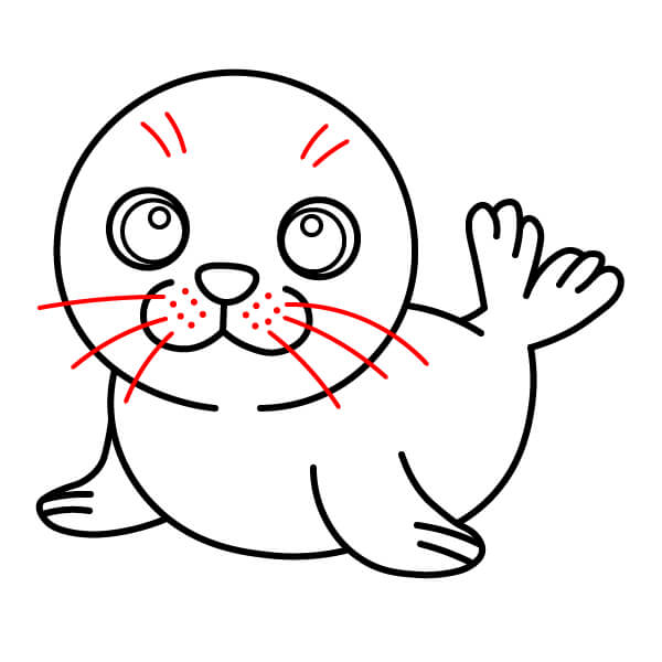 Thêm một vài sợi râu (lông xúc giác) kéo dài ra từ hai bên mõm. Vẽ một vài chấm nhỏ trên mõm, biểu thị các khu vực mà râu mọc.