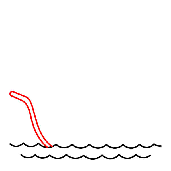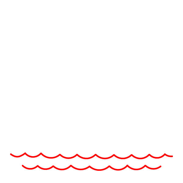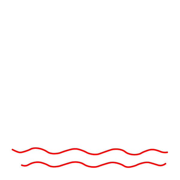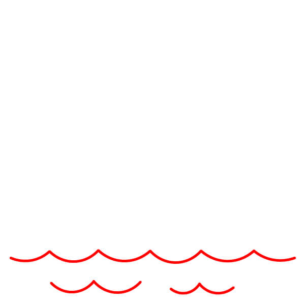 Bắt đầu bằng cách vẽ hai nhóm đường lượn sóng ở phía dưới vùng vẽ. Một nhóm sóng liền mạch, còn nhóm kia có một khoảng hở nhỏ ở giữa. Những đường này tượng trưng cho mặt nước.