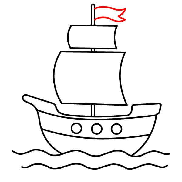 Ở đỉnh cột buồm, vẽ một lá cờ nhỏ dạng đuôi én (có chẻ hai) bay về một phía.