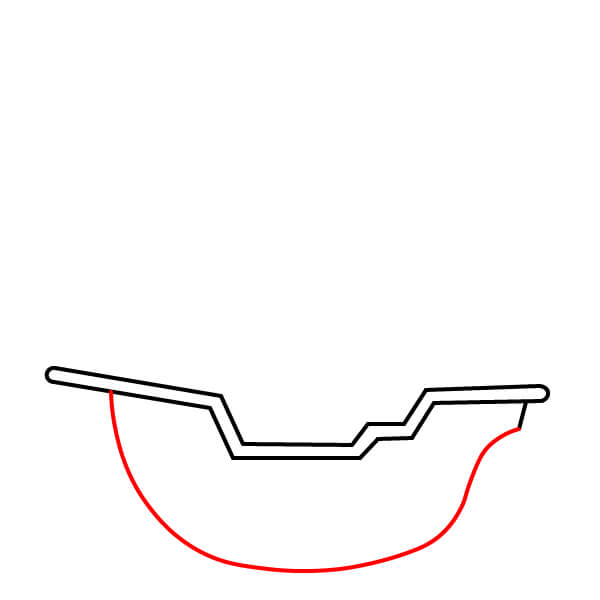 Bắt đầu bằng cách vẽ đường viền phần trên của thân tàu và boong tàu. Hình này dài và thấp, với một phần nâng cao ở phía sau (tháp đuôi tàu) và phần trước thấp hơn, hơi nghiêng (mũi tàu).