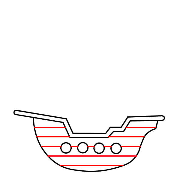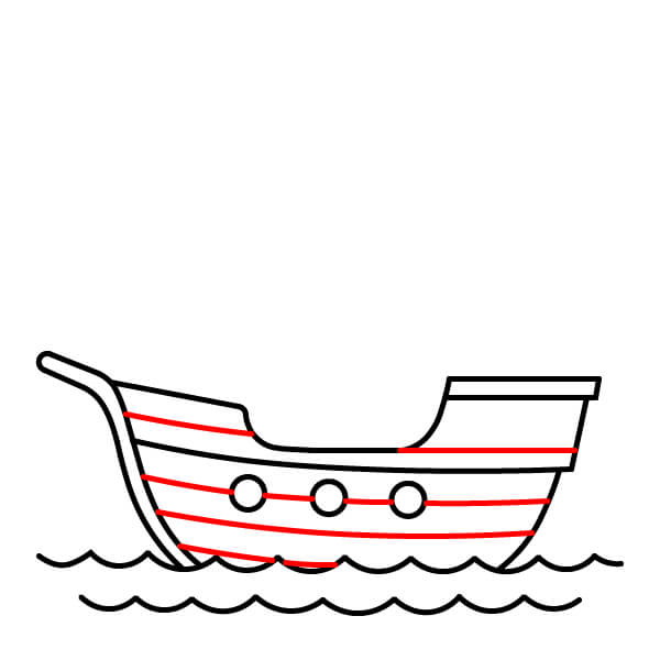 Thêm hai đường cong ngang ở phần dưới của thân tàu. Những đường này giúp tạo cảm giác các tấm ván gỗ trên thân tàu.