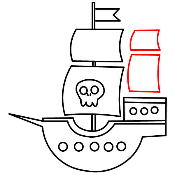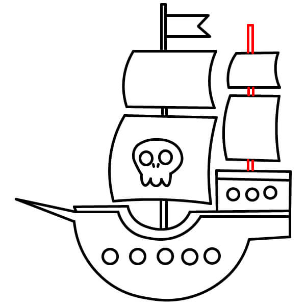Vẽ thêm một bộ gồm hai cánh buồm khác mọc lên từ khu vực cabin ở boong sau. Các cánh buồm này nên nhỏ hơn bộ buồm chính.