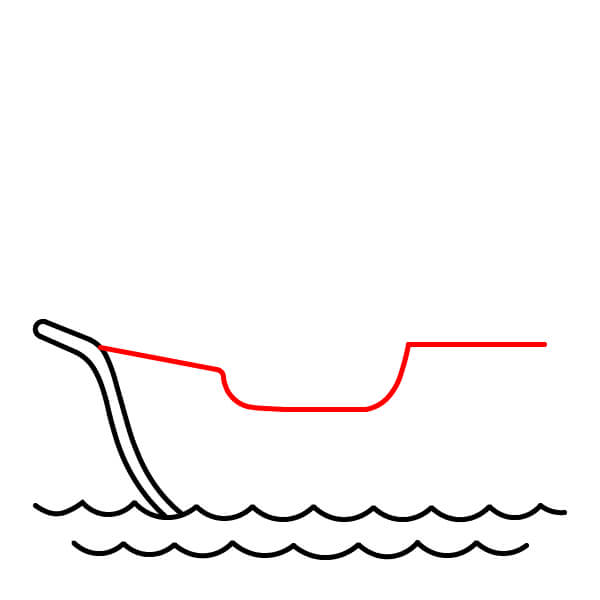 Vẽ đường sống tàu và phần mũi tàu cong ở phía trước, đảm bảo phần này kéo dài xuống dưới và chạm vào mặt nước.