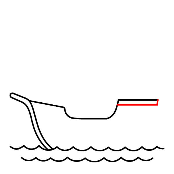 Thêm một đường ngang ngắn ở phía trên của phần đuôi tàu cao để thể hiện lan can của boong trên.
