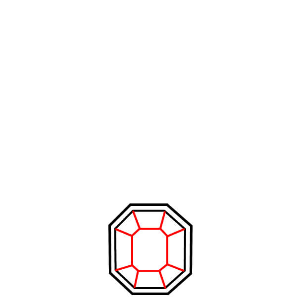 Bước 3: Bên trong hình bát giác nhỏ, thêm các đường để tạo mặt cắt của viên đá quý. Vẽ hai đường thẳng đứng và hai đường ngang cắt nhau trong hình bát giác. Sau đó nối các đầu của những đường này với các góc của hình bát giác bên trong.