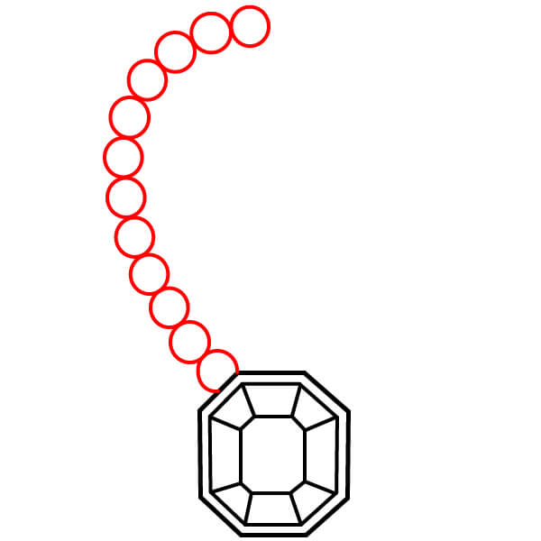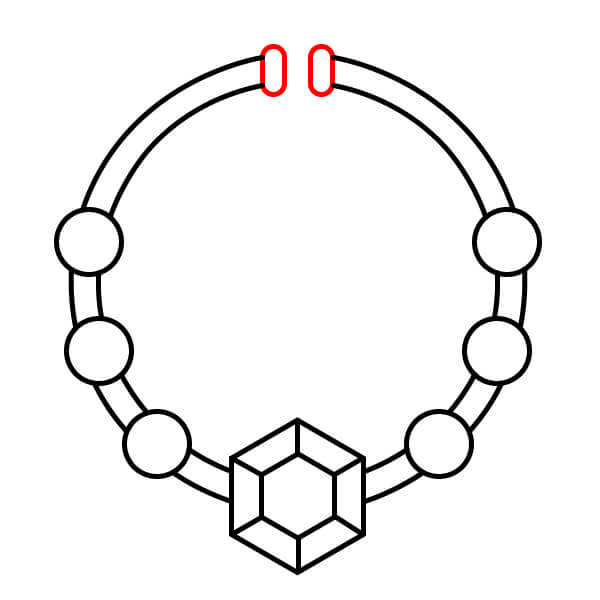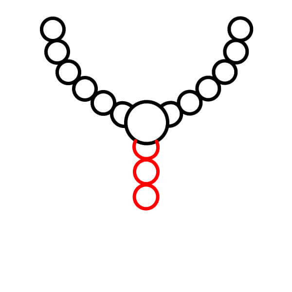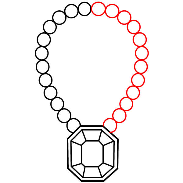 Bước 5: Hoàn thiện chiếc vòng cổ bằng cách vẽ một đường cong đối xứng gồm các hình tròn nối tiếp ở phía còn lại của viên đá, kết nối với các hình tròn đã có để tạo thành một vòng hoàn chỉnh.