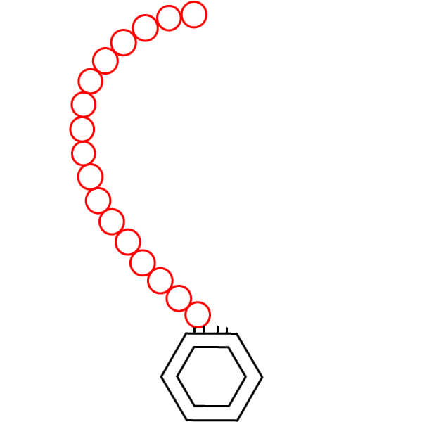 Bước 4: Từ ba đường nhỏ trên đỉnh hình lục giác, vẽ một đường cong gồm các hình tròn nối tiếp nhau hướng lên trên.