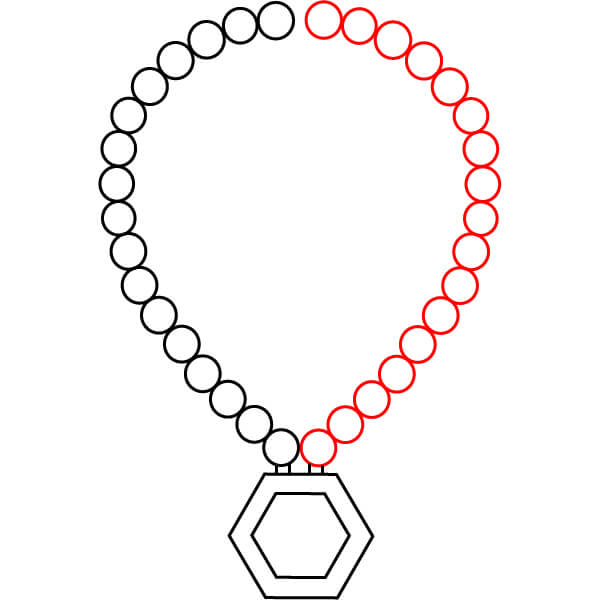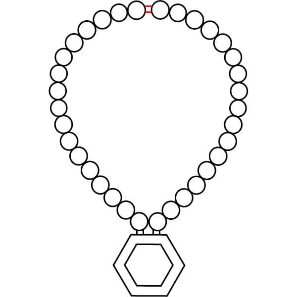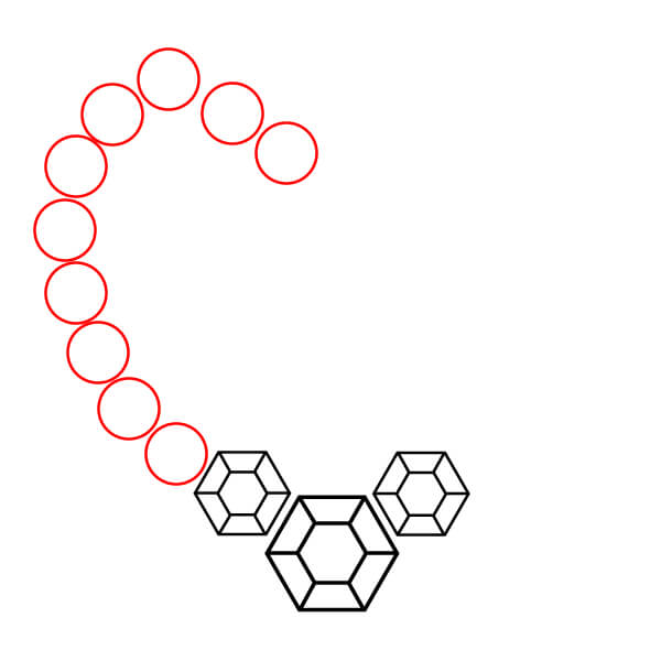 Bước 5: Hoàn thiện chiếc vòng cổ bằng cách vẽ một đường cong đối xứng gồm các hình tròn nối tiếp ở phía còn lại của hình lục giác, nối với các hình tròn đã có để tạo thành một vòng khép kín.